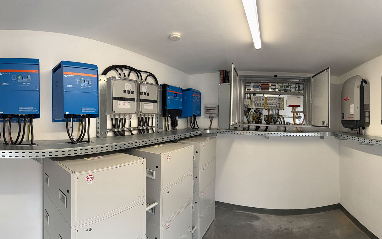 Die Anlage produziert Strom direkt vor Ort. Ein Wechselrichter wandelt diesen so um, dass er im Alltag genutzt werden kann.